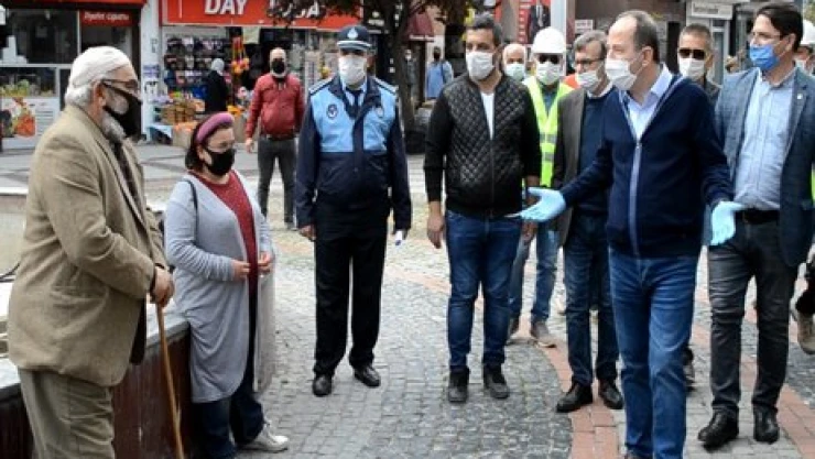 maske kullanmaya davet etti. Gürkan, esnaflara ve vatandaşlara maske dağıtımı
