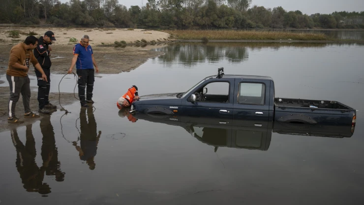 Edirne'de Meriç Nehri'ne düşen pikap sudan çıkarıldı.
