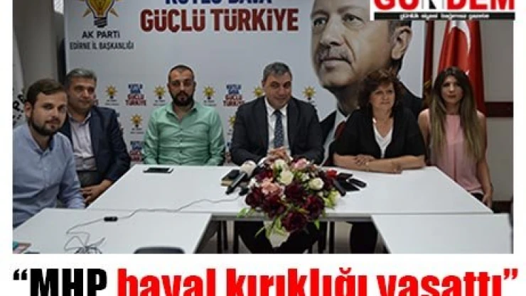 MHP'nin Edirne'de oylarının sorulması üzerine cevap veren İba; 'MHP, bize burada hayal kırıklığı yaşattı. Neredeyse yüzde 5 bile yok. Türkiye'de iyi bir oy aldı. Ona da şaşırdık. MHP, bizi hem Türkiye'de şaşırttı hem de burada şaşırttı. O arkadaşlar da çok çalıştılar. Ben takip ettim, istişare ettik. Ellerinden geleni yaptılar. Buradaki performansları iyi değildi' dedi.