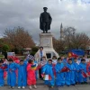 Yürüyüşün ardından Atatürk Anıtı önünde toplanan minikler, öğretmenleri eşliğinde haklarını öğrendiler.
