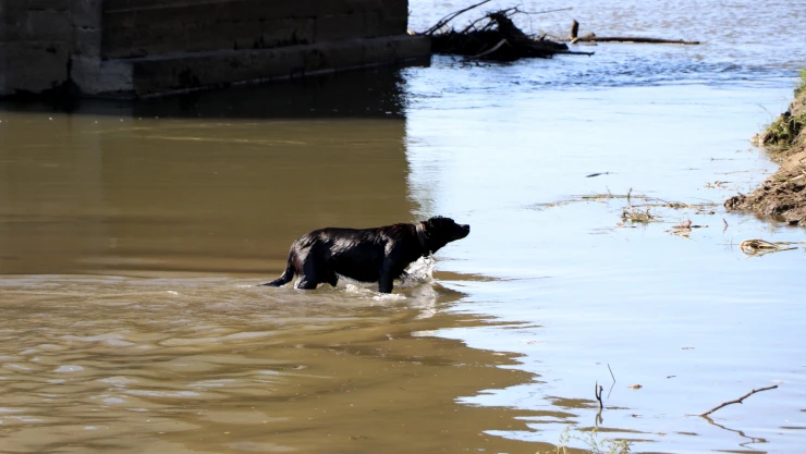 çıktı. Suya atlayan köpek yüzerek nehir kenarına ulaştı. Çalışmaları dikkatle