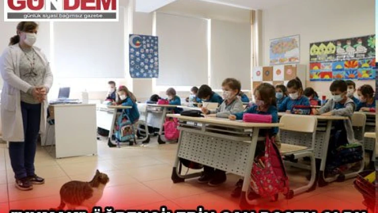 Raşit Efendi İlkokulu öğrencileri, yaklaşık 3 ay önce soğuk havada okulun bahçesine gelen kediyi üşümemesi için sınıfa aldı.
