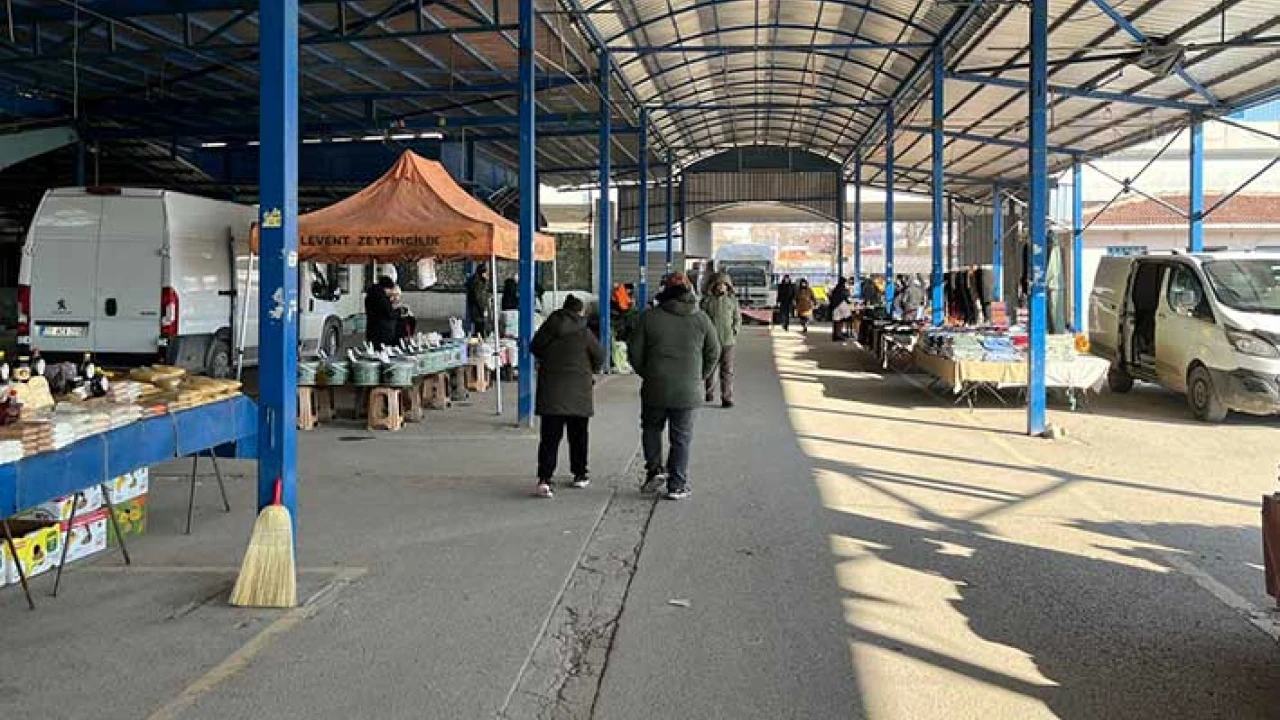 Pazar alanında alışılmış kalabalık görüntüler yerini sessizliğe bırakırken, soğuk ve yağışlı havanın alışverişi olumsuz etkilediği dikkat çekti.