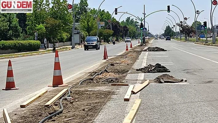 Edirne'de Atatürk Bulvarı üzerindeki mevcut orta refüjler sökülerek yerlerine benzer yapılar inşa ediliyor.