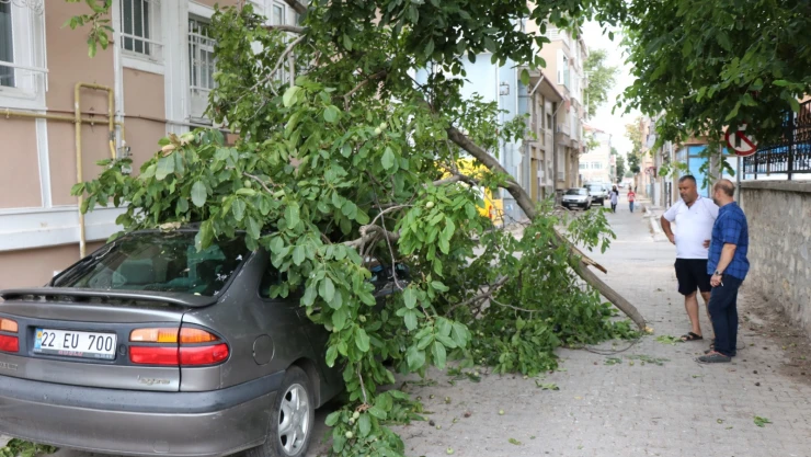 Edirne'de önceki gün meydana gelen yağmur yağışı ve rüzgâr nedeniyle bir ağaç, park halinde duran 22 EU 700 plakalı bir otomobilin üzerine devrildi. Kaleiçi semti Dilaverbey Mahallesi'ne meydana gelen olayda otomobilin içerisinde ya da etrafında kimsenin olmaması derin bir nefes aldırırken devrilen ağaç Edirne Belediyesi ekipleri tarafından kaldırıldı.
