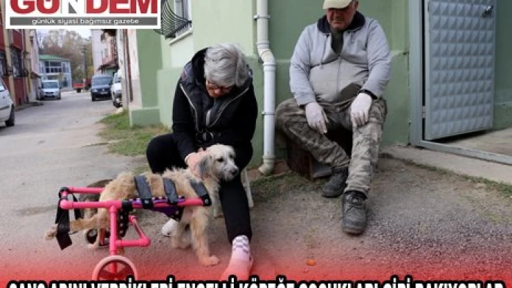 Edirne'de yaşayan Serkan ve Fitnat Şebnem Dağ çifti, bir köyde buldukları engelli köpeğe yürüteç taktırarak hayata bağlanmasını sağladı.