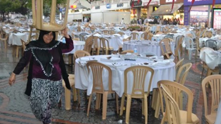 Edirne Belediyesi'nin her Ramazan ayının Kadir Gecesi'nde Saraçlar Caddesi'nde düzenlediği '˜Edirne Sofrası', bu yıl yoğun yağmur yağışı nedeniyle gerçekleştirilemedi. İftar saatine yaklaşık 1 saat kala binlerce Edirneli'nin Saraçlar Caddesi'nde hazırlanan masalarda yerlerini almasının ardından başlayan yağmur yağışıyla vatandaşlar Ali Paşa Çarşısı ve cadde üzerindeki dükkânlara sığınmak zorunda kaldı. Bazı vatandaşlar ise masaları sığınak olarak kullanırken yağmurun şiddetini artırmasıyla birlikte masalar boş kaldı. Cadde üzerinde boş bir dükkândan iftar yemeği dağıtımı gerçekleştirilirken vatandaşlar izdihamdan dolayı alanı terk ettiler. Edirne Belediyesi'nden yağmur yağışının ardından yapılan açıklamada '˜Edirne Sofrası' iftar yemeğinin iptal edildiği açıklandı.