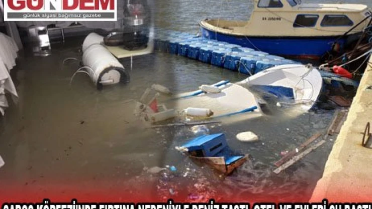 SAROS KÖRFEZİ'NDE FIRTINA NEDENİYLE DENİZ TAŞTI, OTEL VE EVLERİ SU BASTI