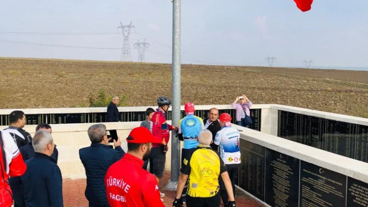 Hastanesi Şehitliği'ne kadar pedal çeviren sporcular, Türk bayrağını Şehit