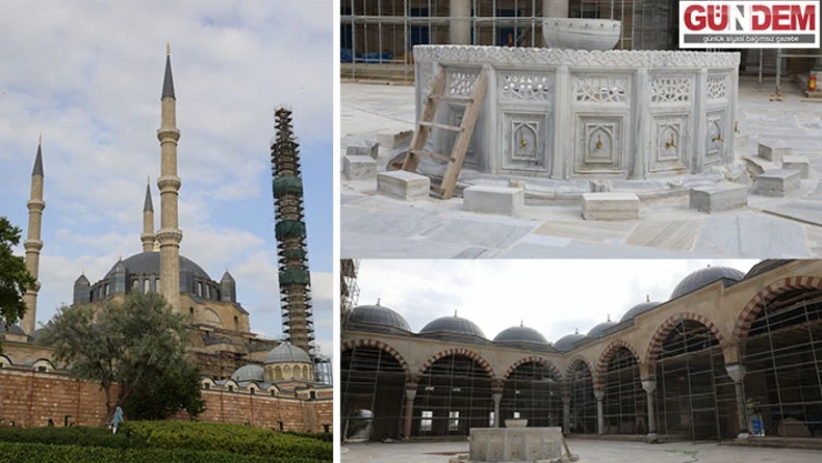 Türk-İslam mimarisinin zirve eseri Selimiye Camisi'nde Vakıflar Genel Müdürlüğünce yürütülen restorasyon çalışmaları kapsamında dış cephe taş onarımları bir minare haricinde tamamlandı.