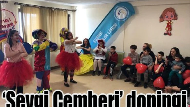 Edirne Sosyal Bilimler Lisesi öğrencileri, örnek bir sosyal sorumluluk projesine imza attılar. Öğretmen Feyza Kurçenli'nin öncülüğünde '˜Sevgi Çemberi' sosyal sorumluluk projesi hazırlayan öğrenciler, Trakya Üniversitesi Tıp Fakültesi Hastanesi'nde tedavi gören çocuklar için eğlence programı organize ettiler.