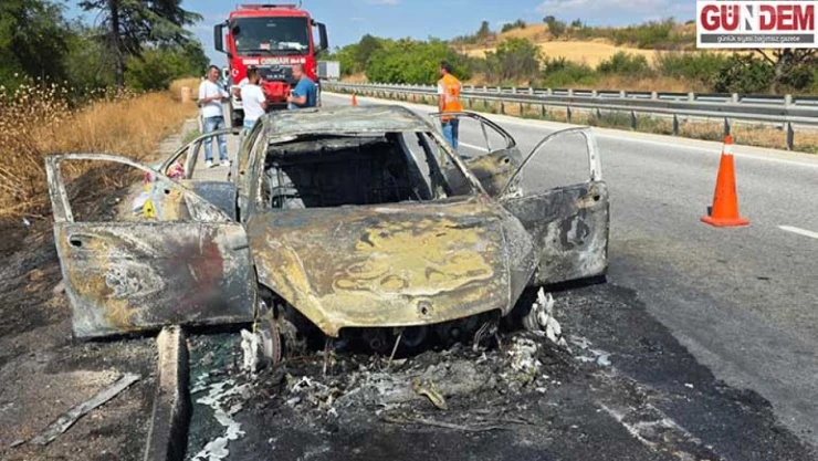 Seyir halindeki Bulgaristan plakalı otomobil yandı