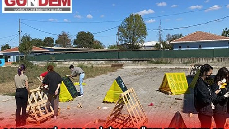 Edirne Belediyesi Sokak Hayvanları Geçici Bakımevi'nde gerçekleşen etkinlikte öğrenciler atık paletler, tahtalar ve brandalardan yaklaşık 40 kulübe yaptı. Kulübe yapımına Edirne Belediyesi ve kentteki hayvanseverler de destek verdi.