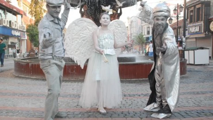 yararlanıp bu şehirde canlı heykelin, kuklanın, pandomimin dışında neler