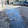 Yeraltında patlak veren suyun parke taşlarının arasından yüzeye çıkıyor.