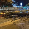 Trafik ekiplerinin önlem aldığı caddede, belediye ekiplerince ağaç parçalara ayrılarak kaldırıldı.