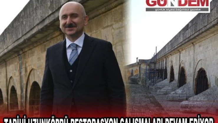 2015 yılında UNESCO Dünya Kültür Mirası Geçici Listesinde yer alan Edirne'deki tarihi Uzunköprü'de aslına uygun şekilde başlayan restorasyon çalışmalarının hızla devam ettiğini açıklayan Ulaştırma ve Altyapı Bakanlığı, aslına uygun olarak restore edildiğini belirtti.