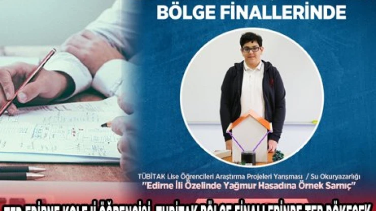 TUBİTAK Lise Öğrencileri Araştırma Projeleri yarışmasında büyük bir başarı gösteren TED Edirne Koleji lise öğrencisi Arda Çapoğlu, TUBİTAK bölge finallerinde ter dökecek.