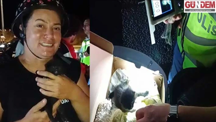 Motosiklet sürücüsü Özge Yalın, kediyi annesinin terk ettiğini ve sokakta bulduğunu belirterek, "4 gündür bakıyorum. 2 saatte bir biberonla besliyorum. Sepette sıcak su torbası ve özel maması var." dedi.