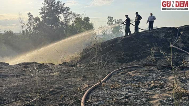 Tunca Nehri kenarında çıkan yangın söndürüldü