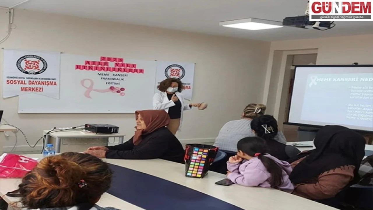 Uzunköprü Sosyal Dayanışma Merkezi’nde (SODAM) gerçekleştirilen eğitim, kurum hemşiresi Hatice Çelikçi ve ebe Saime Sever tarafından verildi. Eğitimde, meme kanserinin kadınlarda en sık görülen kanser türü olduğu vurgulanarak erken teşhisin hayati öneme sahip olduğuna dikkat çekildi.
