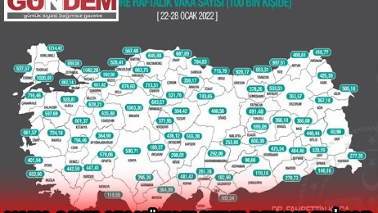 Tekirdağ'da 15-21 Ocak tarihleri arasında 814,01 olan sayının 22-28 Ocak