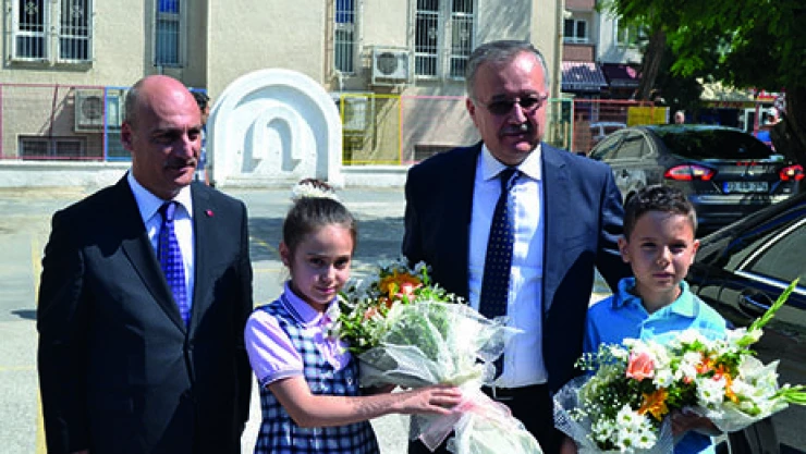 Edirne Valisi Günay Özdemir ve Edirne İl Milli Eğitim Müdürü Hakan Cırıt, Edirne'de 2017-2018 eğitim öğretim yılının sona ermesiyle birlikte karne heyecanı yaşayan 56 bin öğrenciye eşlik ettiler. Özdemir ve Cırıt, 50. Yıl İlkokulu'nu ziyaret ederek öğrencilere karnelerini dağıttılar.