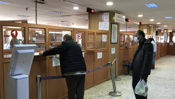 Edirne'de vergi borcunu ödemek isteyen ve hafta sonu uygulanan sokağa çıkma kısıtlamasından muaf tutulan vatandaşlar, vergi dairelerinde yoğunluk oluşturdu.
