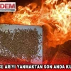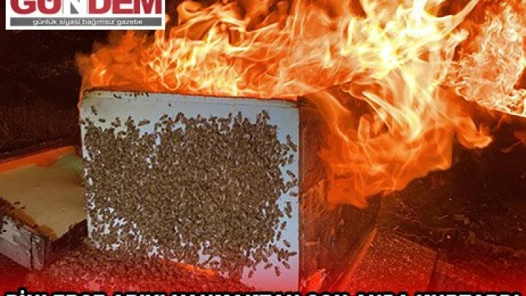 Yangının sıçradığı kovanların kapaklarını açan üretici, binlerce arıyı kurtardı