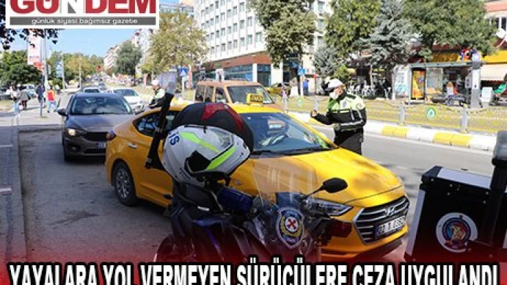 Edirne'de polis ekiplerince yapılan denetimde yaya geçidinde bekleyen vatandaşlara yol vermeyen sürücülere para cezası uygulandı.