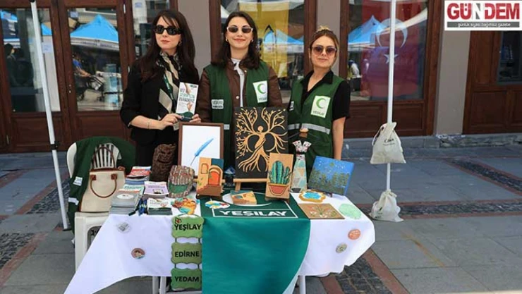 Edirne Milli Eğitim Müdürlüğünce Saraçlar Caddesi'nde düzenlenen etkinlikte, Yeşilay ekipleri de broşür dağıttı ve bağımlılıklara karşı bilgilendirme yaptı.