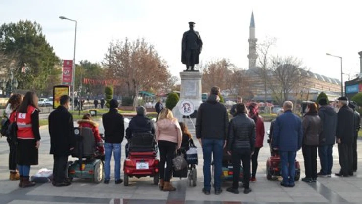 Edirne Engelli Gönüllüleri Derneği, 3 Aralık Uluslararası Engelliler Günü kapsamında Atatürk Anıtı'na çelenk sundu. Törende Dernek Yönetim Kurulu Başkanı Serpil Erkenciler, yönetim kurulu üyeleri, dernek üyeleri ve Kızılay Edirne İl Başkanlığı temsilcilerinin dışında katılımın olmaması dikkat çekti. Erkenciler tarafından Atatürk Anıtı'na çelenk sunulması ile başlayan törende Türkiye Cumhuriyeti'nin kurucusu Mustafa Kemal Atatürk, silah arkadaşları ve tüm şehitler anısına bir dakikalık saygı duruşunda bulunulurken; İstiklal Marşı okundu. Törende ayrıca Kızılay temsilcileri anıta kırmızı karanfil bırakırken; Dernek Yönetim Kurulu Başkanı Serpil Erkenciler ve Yönetim Kurulu Üyesi Şaban Ataseven açıklamalarda bulundu.